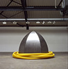 ... jede mehrteilige Arbeit unterläuft die statische Fixierung. Stattdessen werden Beziehungen hergestellt, Kontakte, Verhältnismäßigkeiten. Im Nachhinein erscheint die Erzeugung von Bewegungsimpulsen durch den Motor oder der direkte Körperbezug durch die Hohlform nur als Ausgangspunkt und Verlockung, Betrachter-Reaktionen zu provozieren. Wichtig ist aber bei allen Abwandlungen und Verwandlungen die eigene Körpererfahrung und Körperreichweite als Ausgangspunkt und Maßstab gebend geblieben.